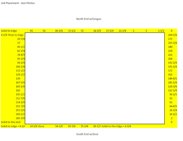 I used excel for the diagram of the wall sections. I know all my wire runs are between 20 and 25inches in each wall and move up or down depending on where the outlet or switch is. Hopefully this forward thinking helps down the road.