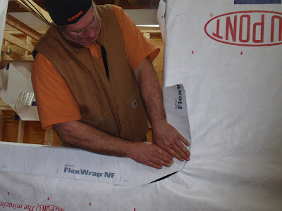 We finished the entire front end of the trailer. It is sheathed with 3/8 CDX on the inside and sealed for water protection (shower). We insulated the space with Rmax rigid foam with a R factor of 18. We then Tyveked the entire external wall in a single sheet of Tyvek. It was actually a pretty simple process and it worked really well. We tacked it lightly and then cut a modified "Y" in each window opening. I had watched many You Tube video's to get an idea of what I wanted to do to seal up windows. I finally decided to follow Matt Risinger and his example of how to Install A Window. This was the best one of all the one's I watched and I watched a lot, I have never installed a window before. I took some cool photo's of this event, there in my camera in Olympia so you are going to have to wait a week to see them. Matt has some great stuff on his blog Green Building Video Blog.
