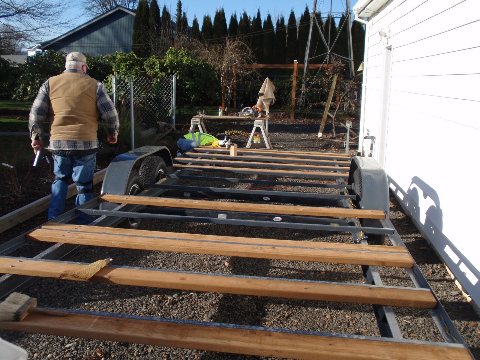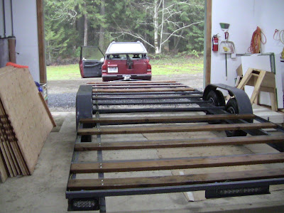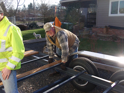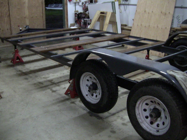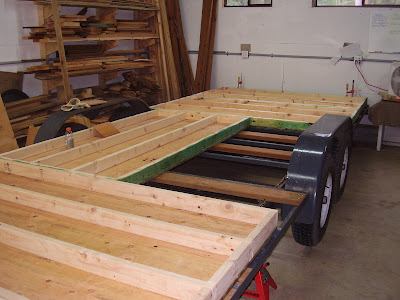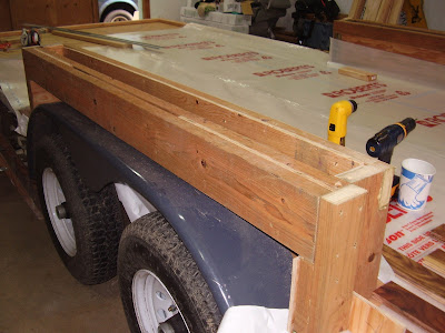 You are probably asking what this is going to look like on the inside with these monster looking boxes. Well not so fast there sparky, the right side wall will be covered by the Kitchen counter. The left side wall will have shelving above them with some below window shelves so it does not encroach that much on the living space. At the very end of the box toward the door I have 8 feet of open space. So they are not that intrusive or at least I don't think they will be. The only other option is to use a flat bed trailer that would cause the loss of 8 inches of head room in the loft. This was not an acceptable option in my mind.