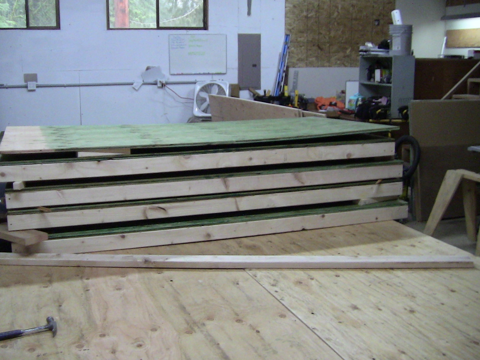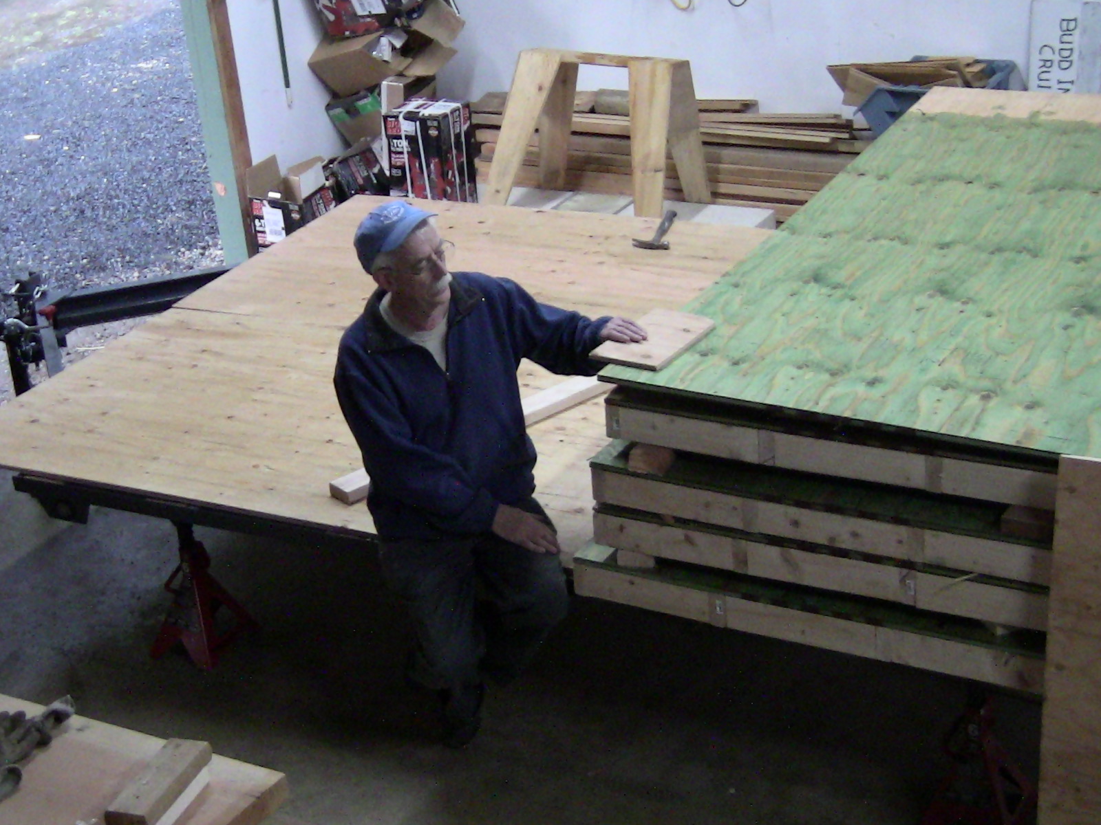 Stet was pretty concerned about the weight over the wheel well's and we both agreed that building a more robust structure was worth the weight of the boxes. Stet used fully treated 2x6's and treated 2x4 for the structure, he then lined the inside of the boxes with 1/2 CDX plywood that we treated with the water proofing and then will cover that with metal sheeting and tape to entirely seal the box area. They are robust and water tight and should work excellent to hold load bearing weight from the roof.
