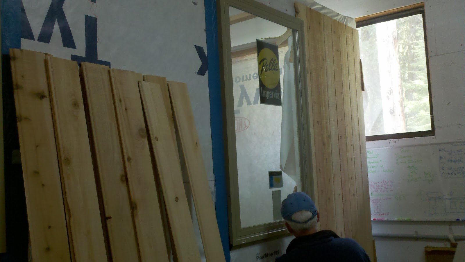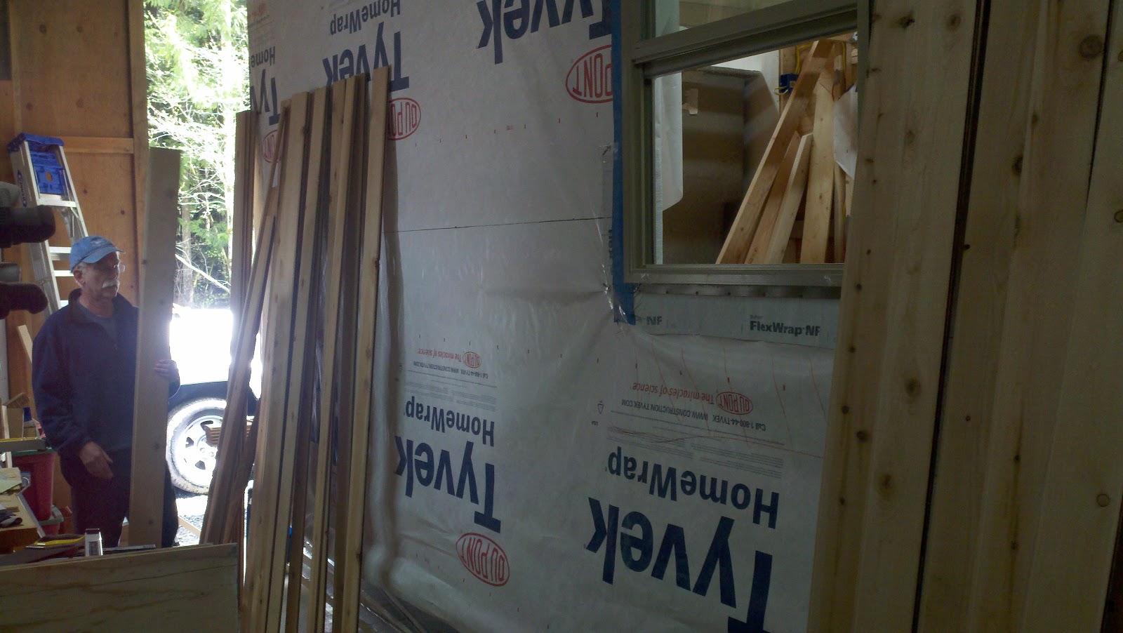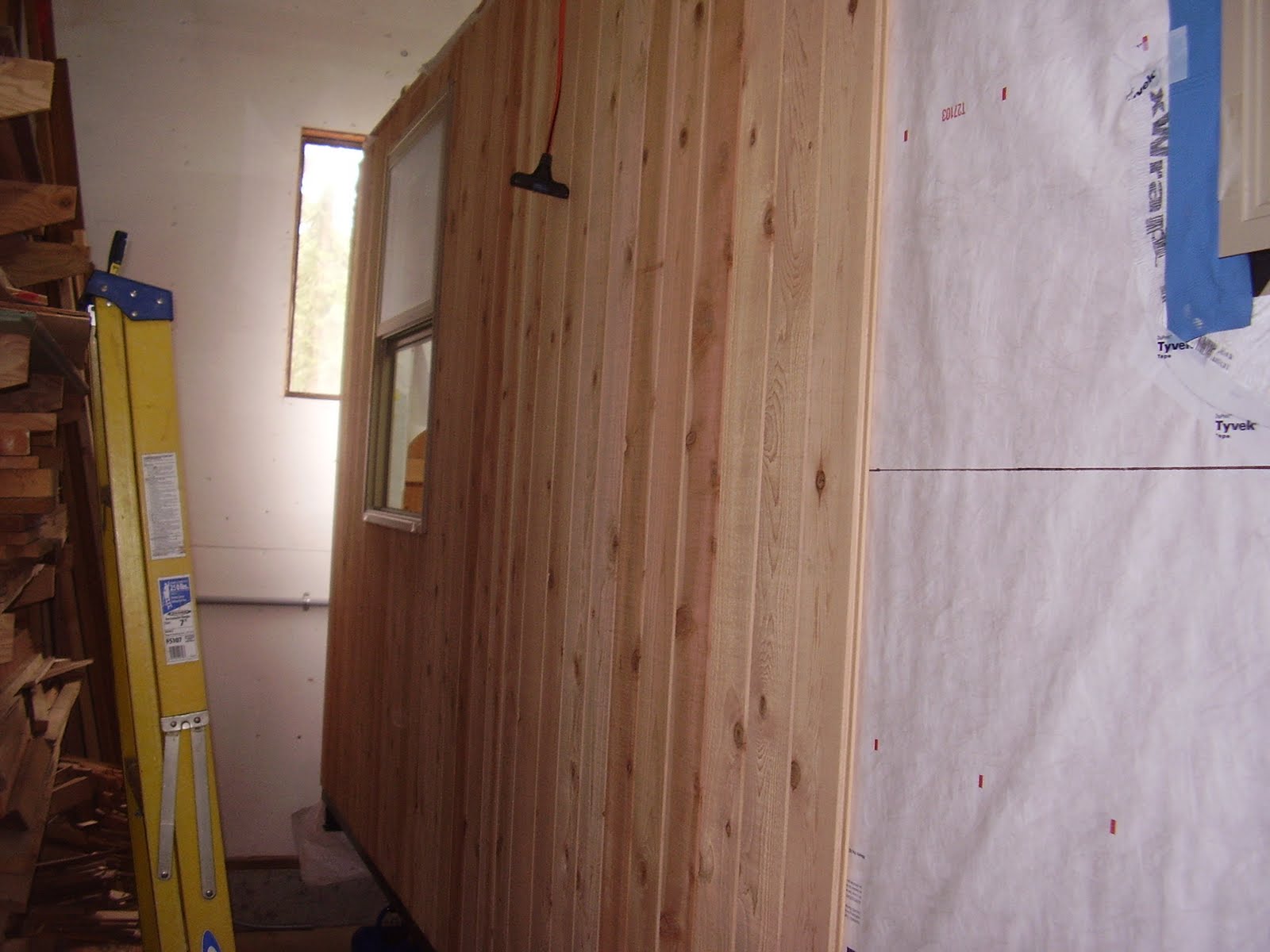 It has been tiny steps over the last two weeks. A little stomach flu wiped out the first weekend in April. I did make some progress in getting the outside siding. I am pretty excited about the Cedar siding. It is 6 inch T&G that I am going to install with the rough side out. I got it from a guy in Olympia who runs a home business of wood broker, he buys from regional mills and get's anything that is not number one's. These are number two or better.