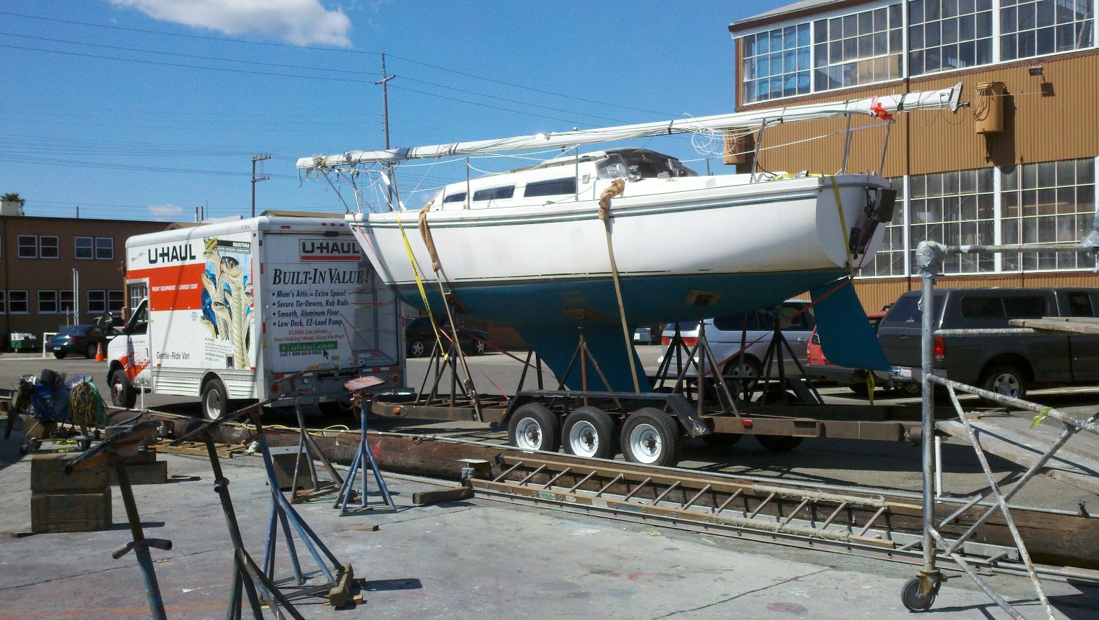 So I rented a U-Haul and got everything loaded and strapped down and off I went with John trailing behind in the pick up. This is a very robust trailer so it handled the journey with no issues. Once in Olympia, we unstrapped her and dropped her in the water. I moved the boat over to my marina where my 30 foot Catalina is located and it will rest there till Saturday where I will motor/sail it up to Tacoma for Brian.