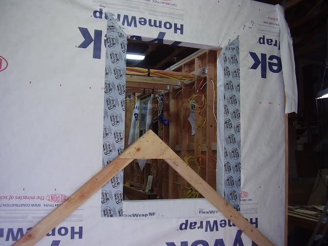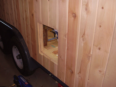 We did prep the tongue end and wrapped the window. Once we pull the trailer out to put the roof on, we will put the window in as we won't need to use that end as the door!