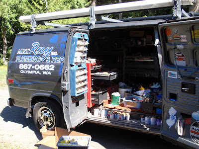While I was working on the other walls, trimming some of the excess foam I used to fill the gaps on the ceiling plywood. I had Art Ray come out and work on the next stage of the plumbing. While I feel confident I could have done this, it would have taken me an entire weekend what Art did in three hours.