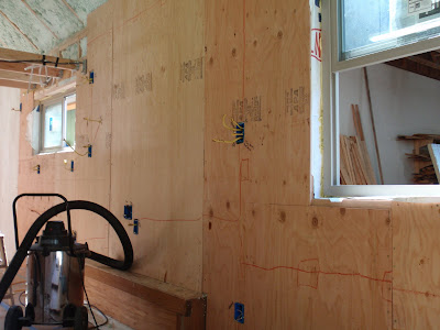 We got both side walls done this weekend and feel like we made good progress. I expect next weekend we will deal with sheeting the ceiling space and then will start on the Tongue and Groove.