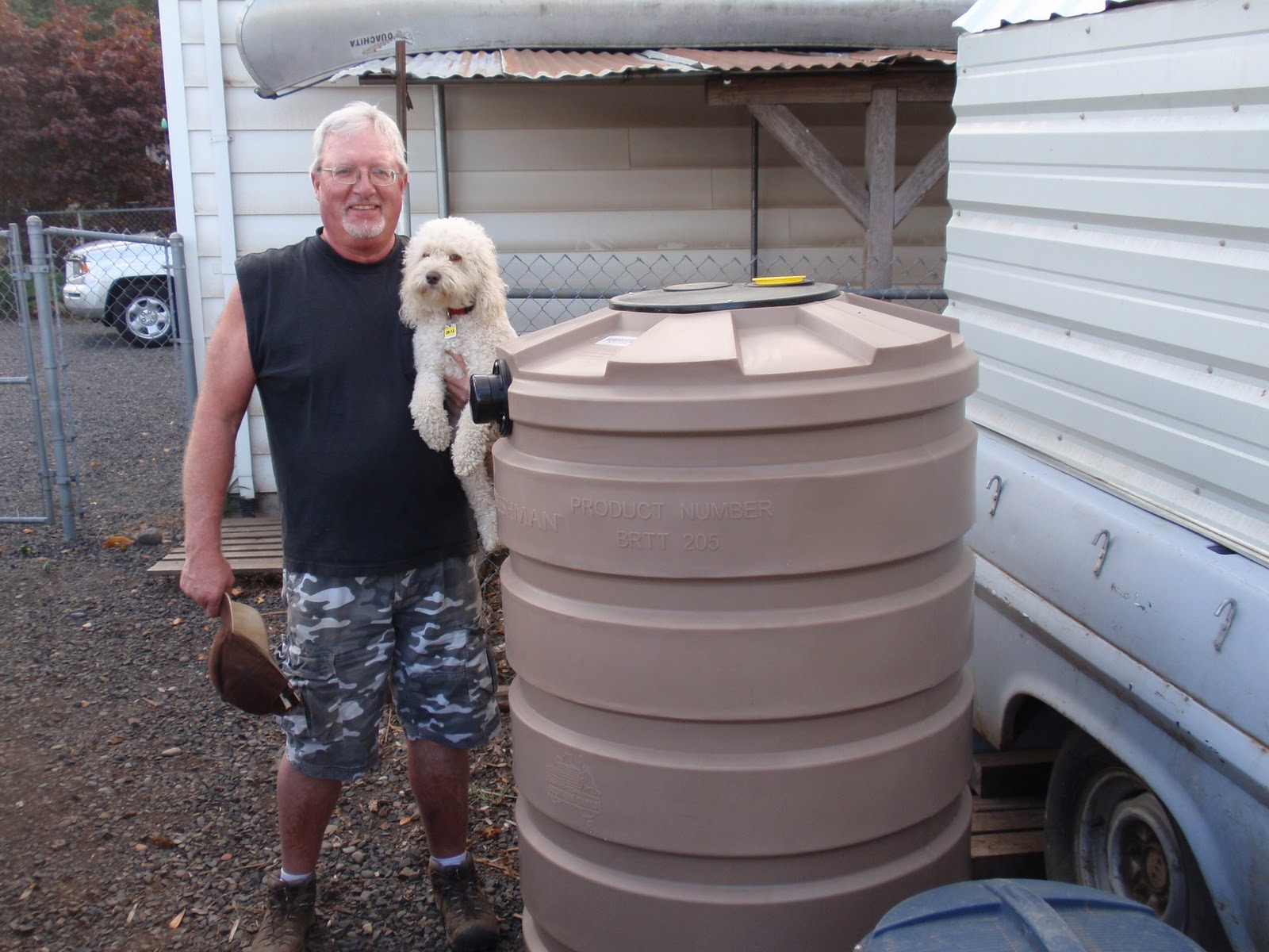 For those of you who are interested it is a Bushman 205 gallon tank. More to come on the catchment system in a later post.