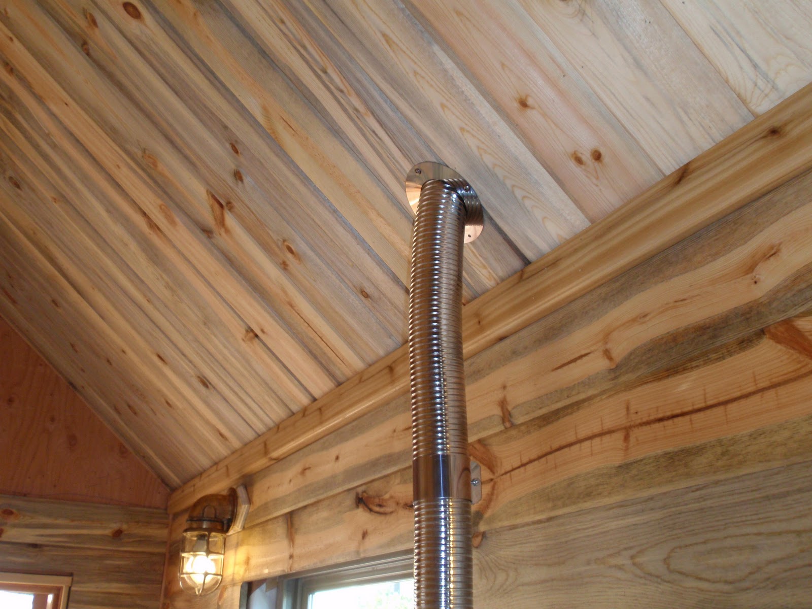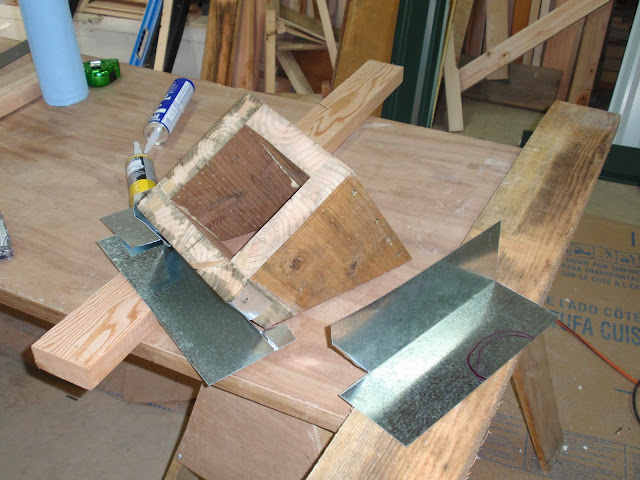 Add a robust amount of silicone and well you have a very water tight enclosure. We used treated 2x6 for the wood structure. It would be good to note at this point that none of this structure will ever touch anything hot from the stove. The exhaust vent from the Dickinson is two pipes in one. A center pipe vents the hot exhaust out, and the surrounding pipe vents air in for combustion. This is the way the stove works and why I have one in my boat. They don't suck air out of the space. This is a good thing in a "tiny house" or "mobile cottage".