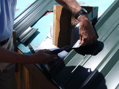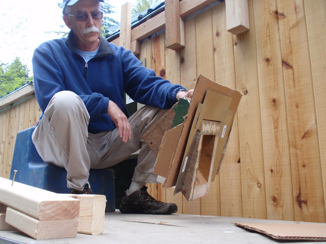 You can see the Cardboard template that Stet used for the Chimney. I learned very quickly the "cardboard" cutout can prove invaluable to form fitting.