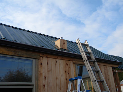 I was asked a question yesterday about the fire place (Dickinson Stove) and how I was able to get it in place with a metal roof. These types vents take place long before I was able to install the fire place. I will go back and talk about the process of preparing the hole for the stove. First we identified where the stove would be placed.