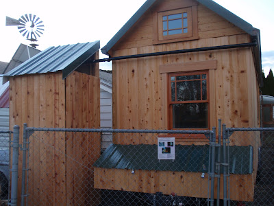 The almost finished product. I covered it in plastic for travel and then later wrapped it in Cedar tongue in grove to make it look like the house.