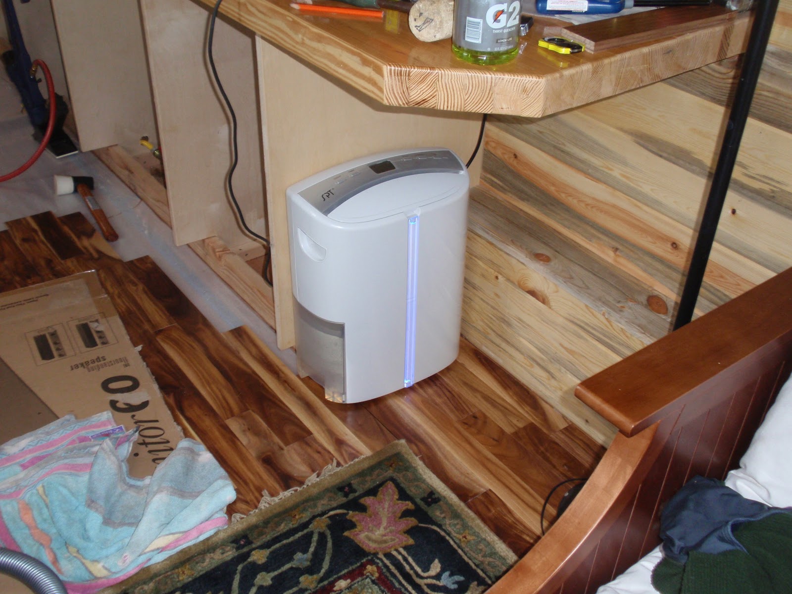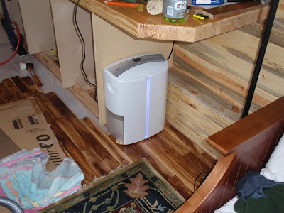 The closed cell foam insulation has been awesome. I have a hard time believing that it is 28 degrees outside and 60 inside and I have had the heat on low low all night. It is really air tight in the cottage as well, the picture above is the Dehumidifier to get the moisture out of the air. I generally am running around 70% and it is something that I will have to monitor. I never installed any of the three fans I have but am ready to do so if need be. We will see.