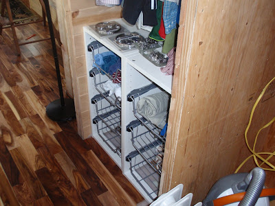 One of my design goals was to be able to take advantage of some off the shelf components for drawers and shelving so I when I built my closet and refrigerator room they were designed to be able to fit in these cabinets (Thanks IKEA). I knew my limitations on my skills and cabinetry is not anything I am skilled enough to do without taking a bunch of time. Which is why the kitchen cabinets are not done. These are functional and will work fine for what I need.