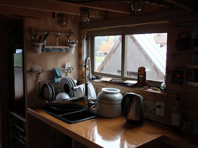 I have my kitchen pretty much set up but don't have any way to cook anything. I had a discussion with the local govt. and they were concerned that I was "living" here and you can not have 2 residences on one property in Dundee, OR. Now I did not get into any discussion that there are 9 other RV's or Trailers in the neighborhood that ALL have kitchens. I just have chosen not to install any of that gear. I have a room in my brothers house and use his facilities for the most part and certainly do all my cooking/eating within the house. We will see how this plays out, don't think I will push the issue as I don't have to, knowing soon as things dry out the cottage will move. I still have a fair amount of work to do to tighten up the cottage and get it dialed in but don't plan on having dinner over at my house anytime soon.
