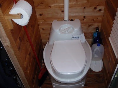 On to the Composting toilet. While I was not aware and did not enjoy the idea of having a fan running 24/7 I have moved past that issue. The fan is not loud and it does not consume a lot of energy (I run it off the solar system so it is not an electrical hog) but it is still "on" and I am aware of it. That being said, the functioning and operation of the toilet has been excellent with no problems or concerns. I have emptied it twice without trauma over the year. When I emptied the compost it was half full and really nothing more then dirt. I am sure the Rhododendrons enjoyed it. I am a single guy who has a job so it is really under light use as I am not home during the day. Bottom line to me is this is a great option and I would feel comfortable using this type of technology the rest of my days and we should all get ride of water flush toilets, what a total waste of good water.