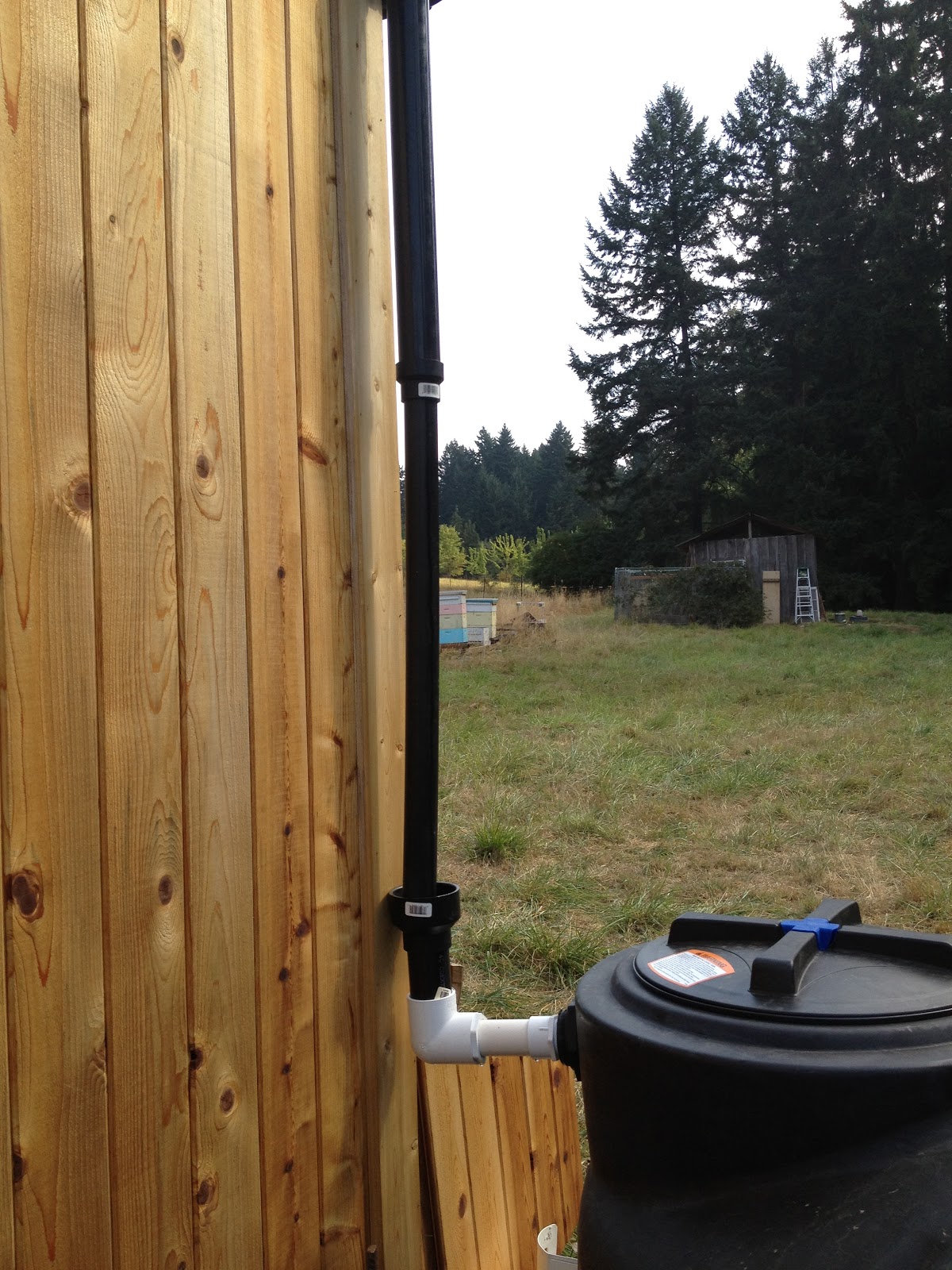 I did a real simple drop down off of the combined drain, goes directly into the tank. I have yet to decide how I am going to cover the tank but I found a really cool display up in Gig Harbor on my vacation and I am trying to come up with something similar.
